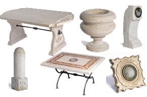La Rustici del Trusco s.r.l. realizza elementi di arredo interno e urbano in pietra (travertino, peperino, marmo etc..): quali panchine, basi per lampioni, dissuasori, cappelli per colonne, vasi, tavoli etc..